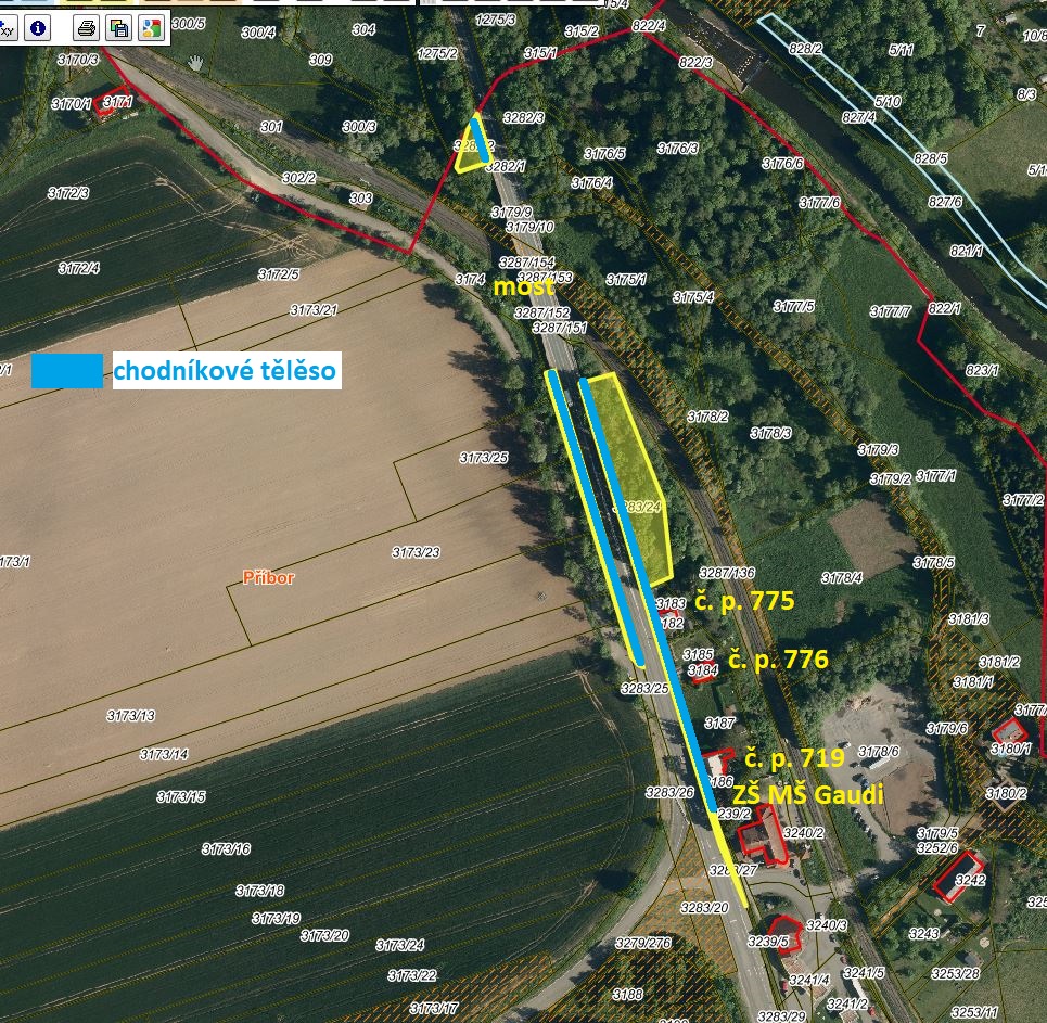 | Chodníkové těleso na pozemcích parc. č. 3282/2, 3283/23, 3283/24 a 3283/27 k. ú. Příbor - ul. Ostravská